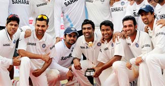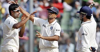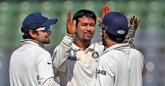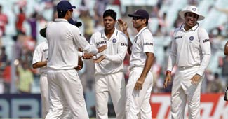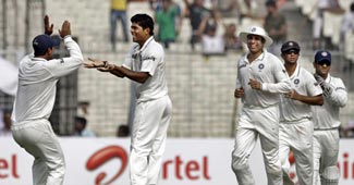वेस्टइंडीज के खिलाफ पांच वनडे मैचों की सीरीज के शुरुआती मुकाबले में एंड्रियन बराथ का विकेट लेने के बाद साथी खिलाडि़यों के संग विनय कुमार.