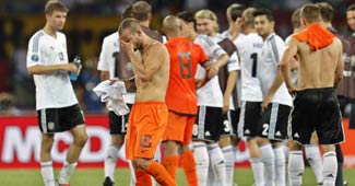 पुर्तगाल के खिलाफ हॉलैंड टीम की हार से निराश समर्थक.