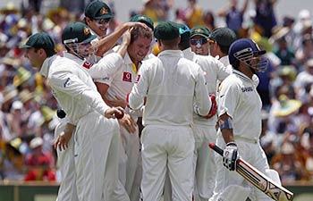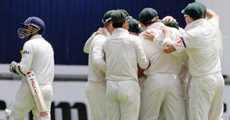 आस्ट्रेलिया ने तीन विकेट पर 335 रन से आगे खेलना शुरू किया और जहीर खान तथा इशांत शर्मा की गेंदबाजी जोड़ी के खिलाफ सात रन प्रति ओवर से अधिक की दर से रन जुटाए.