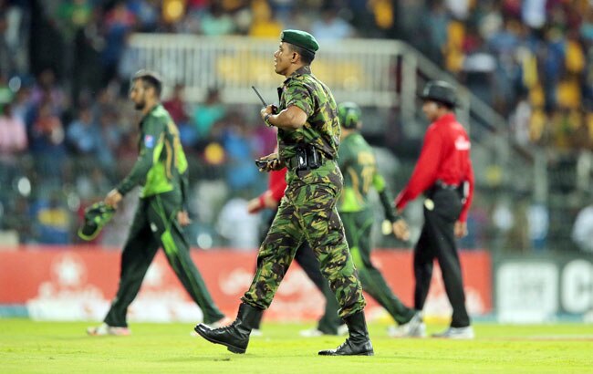 श्रीलंका के खिलाफ तीसरे वनडे मैच में दूसरे सेशन के दौरान स्टेडियम के बाहर से फेंका गया एक पत्थर पाकिस्तानी फील्डर के करीब आकर गिरा.
