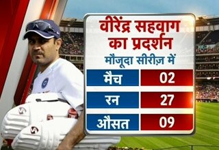भारतीय क्रिकेट टीम के सलामी बल्लेबाज वीरेंद्र सहवाग को ऑस्ट्रेलिया के साथ जारी मैचों की टेस्ट सीरीज के शेष दो मैचों के लिए टीम में शामिल नहीं किया गया है. सहवाग ने अब तक खेले गए दो मैचों की तीन पारियों में 2, 19 और 6 रन बनाए हैं. इस कारण उन पर चयनकर्ताओं की गाज गिरी है.