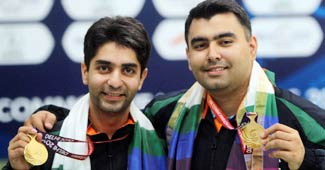गगन और इमरान की भारतीय जोड़ी ने डा कर्णी सिंह निशानेबाजी रेंज में फाइनल्स में 2325 के स्कोर से खेलों का रिकार्ड बनाकर इंग्लैंड के जेम्स हकल और केनी पार को हराकर सोने का तमगा हासिल किया.{mospagebreak}