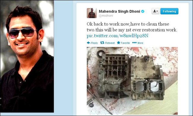आप टीम इंडिया के कप्तान महेंद्र सिंह धोनी को एक बाइक लवर के रूप में जानते हैं, पर गुरुवार को उन्होंने अपनी बाइक के टुक़डे-टुकड़े कर दिए. दरअसल यह उनकी पहली बाइक थी, जिसे शौकिया तौर पर उन्होंने खोल डाला. ट्विटर पर अपने दो लाख से ज्यादा फॉलोअर्स के लिए उन्होंने बाइक और उसके पुर्जों की तस्वीरें शेयर कीं.