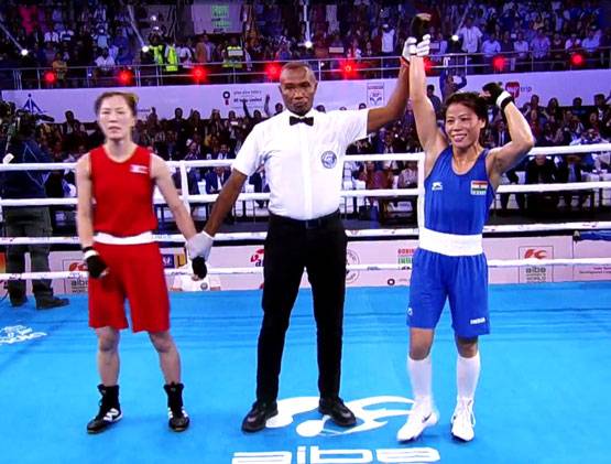 मेरीकॉम ने पिछले साल एशियाई चैंपियनशिप के फाइनल में इसी उत्तर कोरियाई मुक्केबाज को पराजित किया था, जो काफी फुर्तीली और आक्रामक खेलती हैं. मेरीकॉम ने केडी जाधव हॉल में घरेलू दर्शकों के सामने अपनी प्रतिद्वंद्वी को एक बार फिर मात दी. उन्होंने अपने सटीक मुक्कों से 29-28, 30-27, 30-27, 30-27, 30-27 अंक हासिल किए.