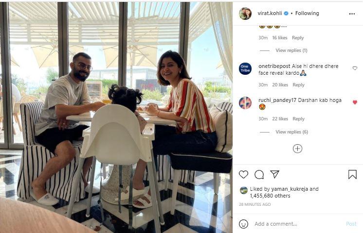 अभी कुछ दिन पहले ही अनुष्का शर्मा ने भी अपने इंस्टाग्राम अकाउंट पर विराट कोहली, वामिका की तस्वीर साझा की थी और कैप्शन लिखा था कि 'मेरा पूरा दिल एक फ्रेम में.'