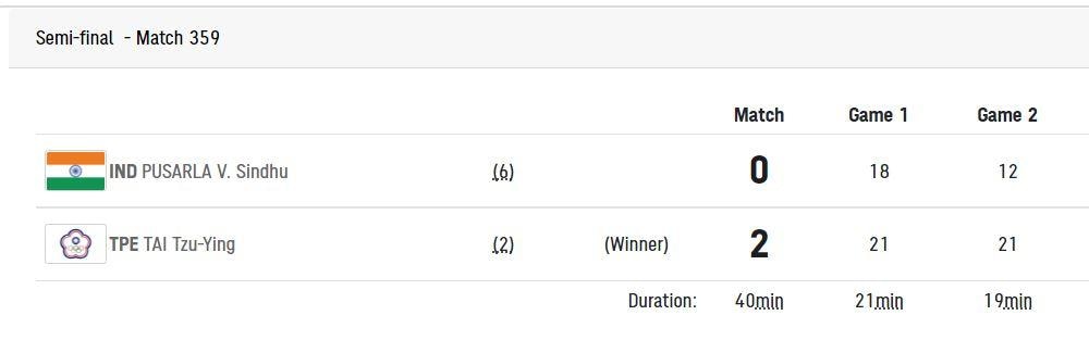 दोपहर बाद 3:20 बजे: महिला एकल सेमीफाइनल पीवी सिंधु बनाम ताइ जू यिंग (चीनी ताइपे)