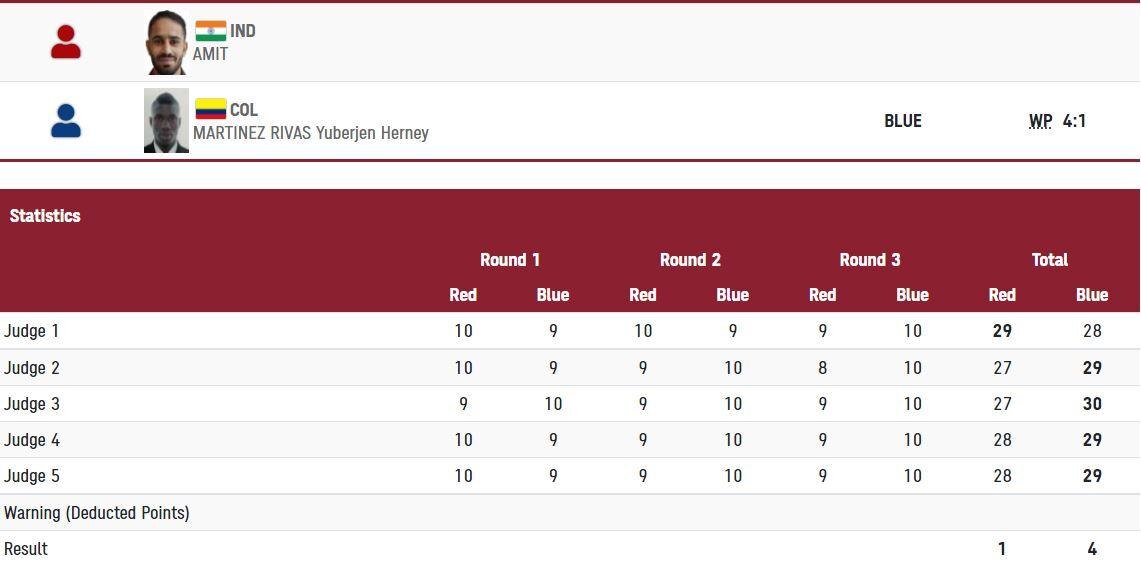 सुबह 7:30 बजे: अमित पंघल बनाम युबेर्जेन रिवास (कोलंबिया) 52 किग्रा पुरुष प्री-क्वार्टर फाइनल