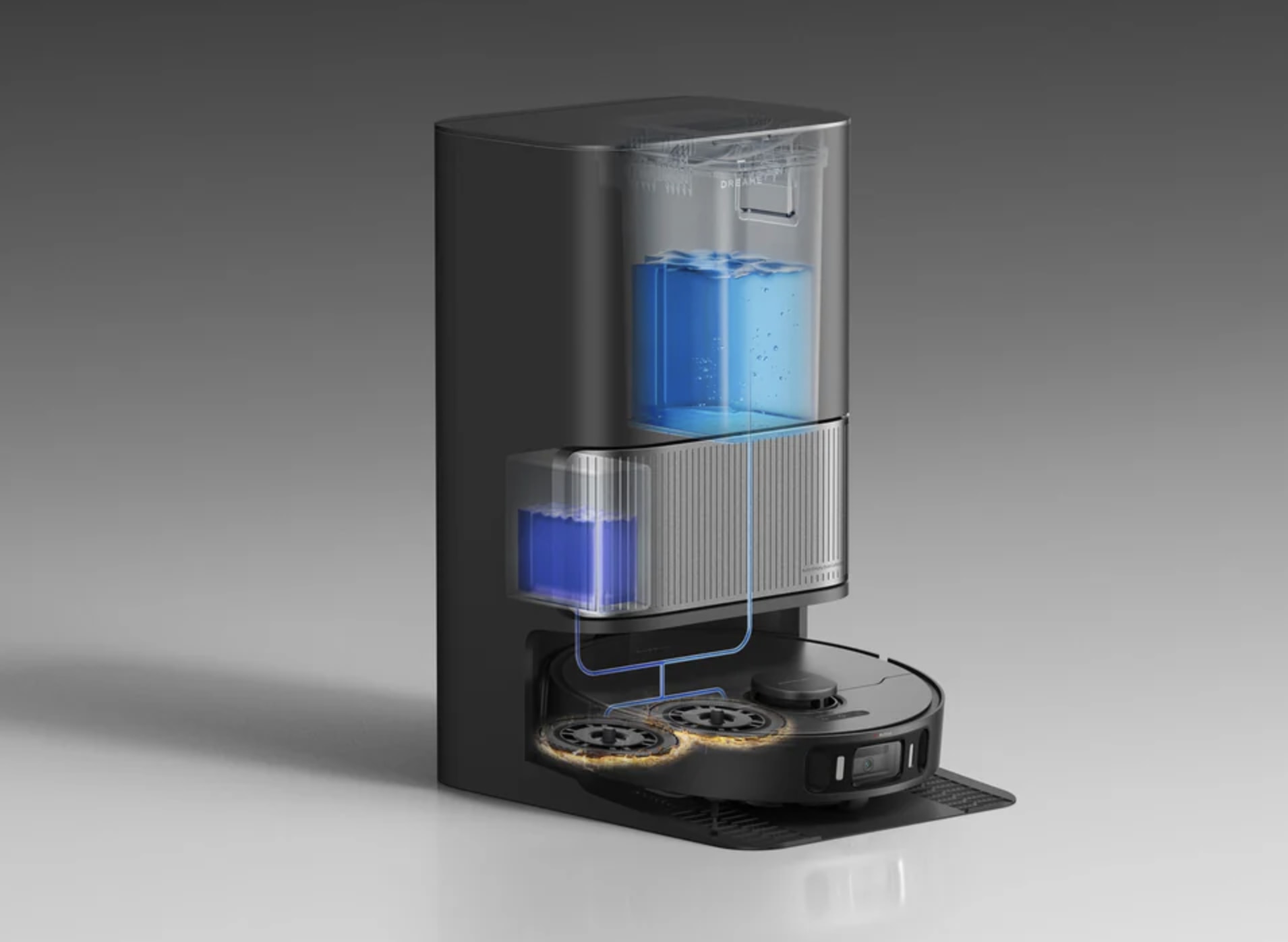 बेस स्टेशन में क्लीन और डर्टी वॉटर टैंक है. ये खुद का बेस स्टेशन के बेस को वॉश करता है. इसी स्टेशन में एक कंपार्टमेंट है जहां आप लिक्विड वॉश डाल सकते हैं. इसी में डस्ट बैग भी लगा है.