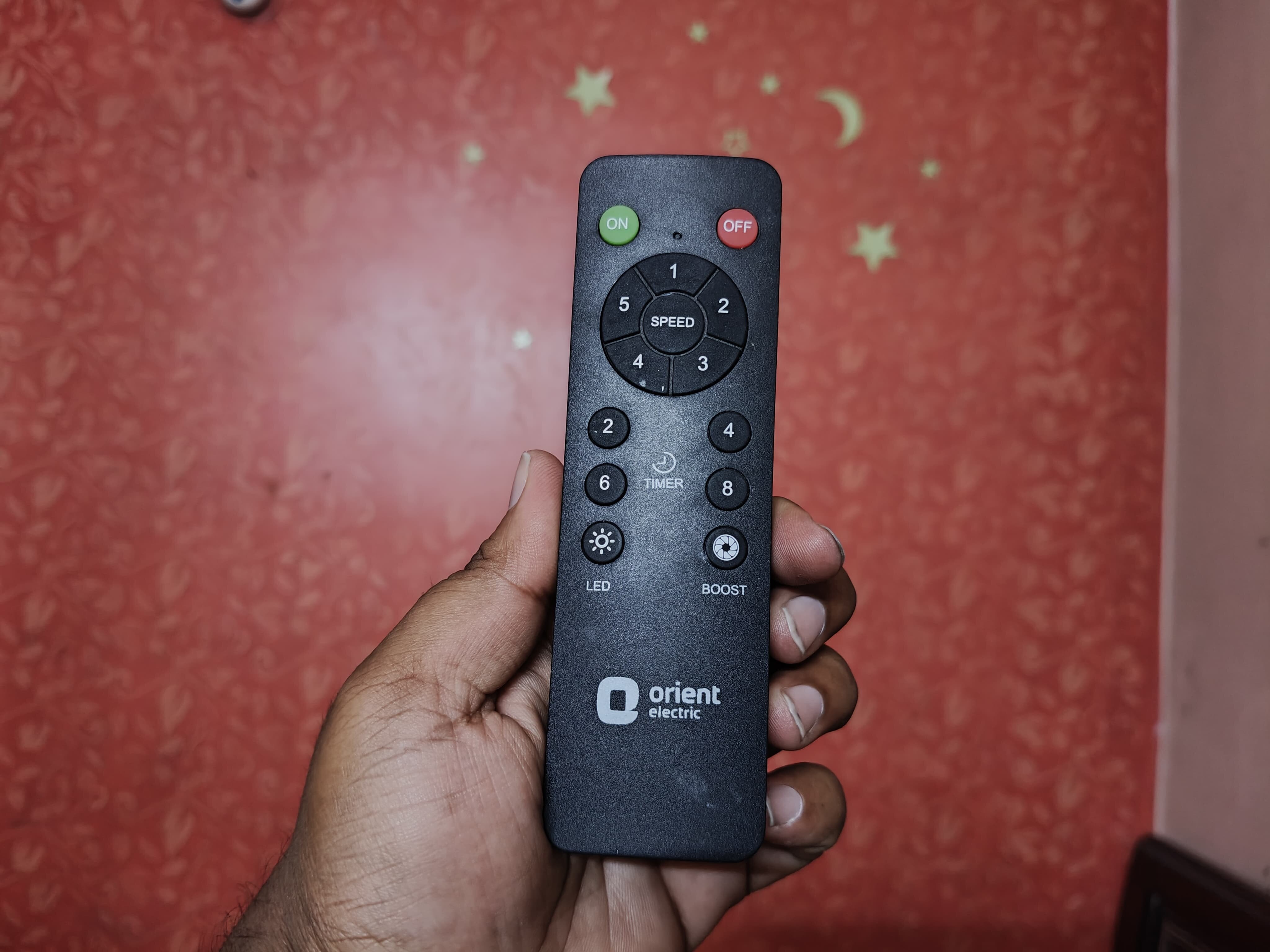 Orient AEON BLDC Fan के साथ एक रिमोट कंट्रोल मिलता है. इस रिमोट कंट्रोल में फैन ऑन और ऑफ करने का ऑप्शन है. इसके अलावा स्पीड बढ़ाने और कम करने का भी ऑप्शन है. इतना ही नहीं इसमें टाइमर को सेट किया जा सकता है. इसके अलावा इसमें LED लाइट को भी ऑन करने का ऑप्शन है. इसके अंदर एक छोटा सा बल्ब है, जो रिमोट के बटन दबाने पर ब्लिंग करती है, जो असल में सिग्नल की कंफर्मेशन देती है. इसके अलावा इसे हमेशा के लिए ऑन भी कर सकते हैं.