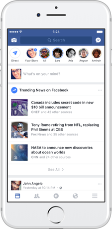 फेसबुक प्रोडक्ट मैनेजर अली अहमदी और प्रोडक्ट डिजाइनर जॉन एंजेलो ने आधिकारिक स्टेटमेंट में कहा है, ‘हम लोगों से यह लगातार सुनते हैं कि उन्हें फेसबुक मोबाइल ऐप में ट्रेंडिंग टॉपिक्स ढूंढने में मुश्किल होती है . इसलिए हम जल्द ही न्यूज फीड में टेस्टिंग करेंगे जिसके बाद यूजर्स को तीन ट्रेंडिंग स्टोरीज दिखेंगी. इसे क्लिक करके पूरी लिस्ट देखी जा सकेगी’