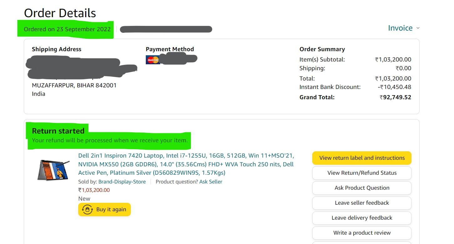 बिहार के मुजफ्फरपुर के रहने वाले एक व्यक्ति ने 12वीं में पढ़ने वाली बेटी के लिए डेल का एक टच स्क्रीन लैपटॉप (Dell 2in1 Inspiron 7420 Laptop) Amazon.in से मंगवाया. लैपटॉप की कीमत थी तकरीबन 1,25,000 रुपये. लेकिन Amazon सेल में उन्हें डिस्काउंट दिया गया. उनसे सिर्फ 92,749.52 रुपये लिए गए.