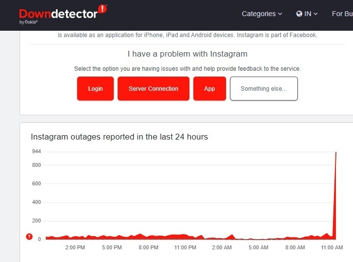Downdetector पर करीब 1 हजार यूजर्स ने रिपोर्ट की और कुछ ही मिनट में यह संख्या 2 हजार के पास पहुंच गई. इस दौरान उन्होंने बताया कि Instagram को चलाने में परेशानी आ रही है. इसको लेकर X प्लेटफॉर्म (पुराना नाम Twitter) पर Insatagram Down को लेकर कई लोगों ने पोस्ट शेयर भी किए.