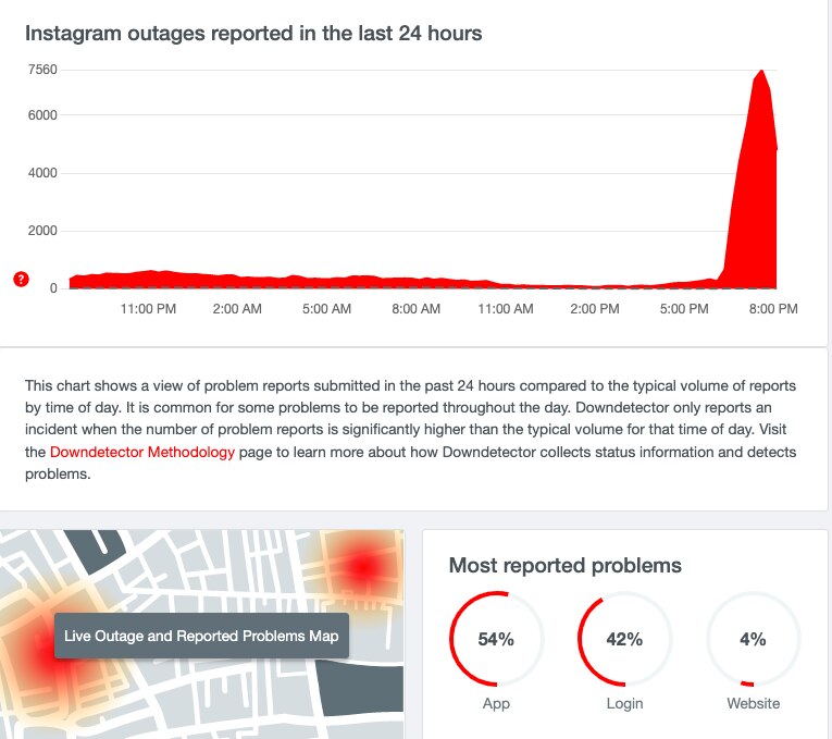 डाउनडिटेक्टर के मुताबिक 6.35PM से लोगों ने इंस्टाग्राम डाउन रिपोर्ट करना शुरू किया. ये ग्राफ फिलहाल नीचे की तरफ आता दिख रहा है. यानी अब कुछ यूजर्स के लिए इंस्टाग्राम काम कर रहा है.