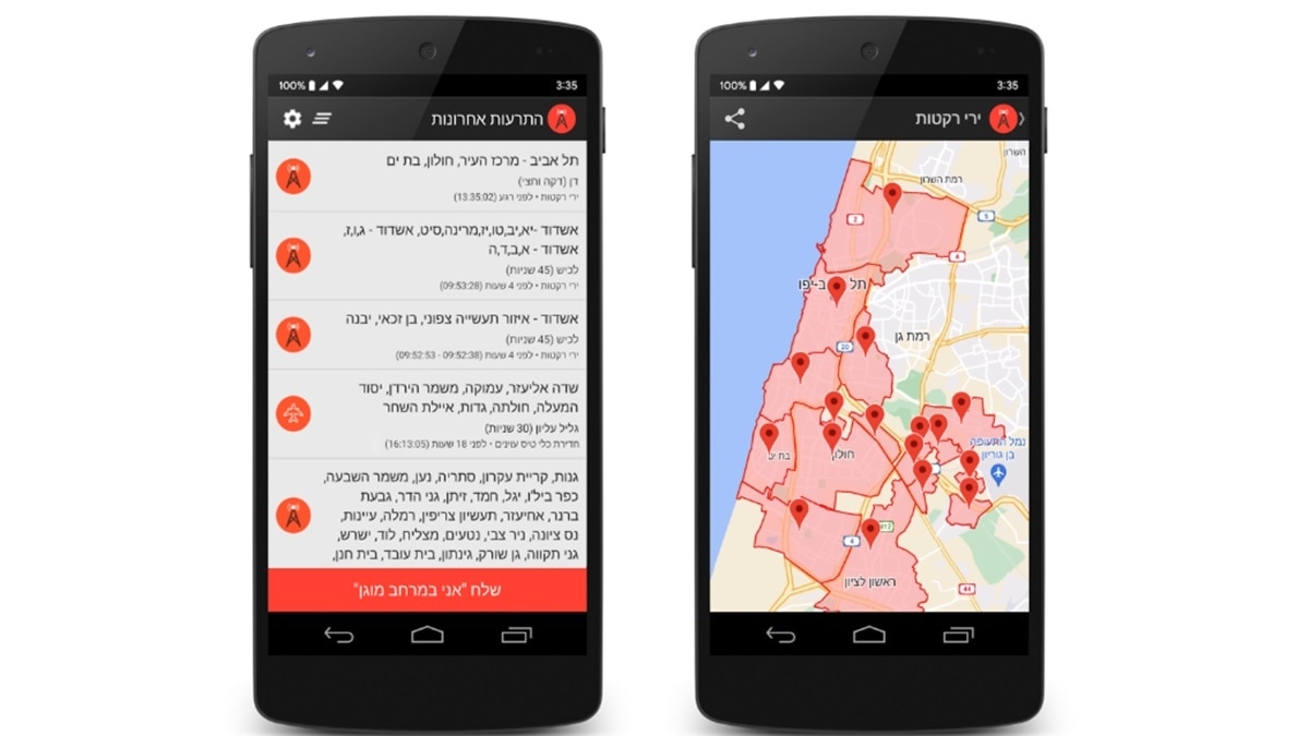 इजरायली डेवेलपर्स ने आवाम की सुरक्षा के लिए एक Android और iOS के लिए खास ऐप्स बना रखे हैं, जो लोकेशन बेस्ड अलर्ट और सेफ्टी गाइडलाइंस जारी करते हैं.