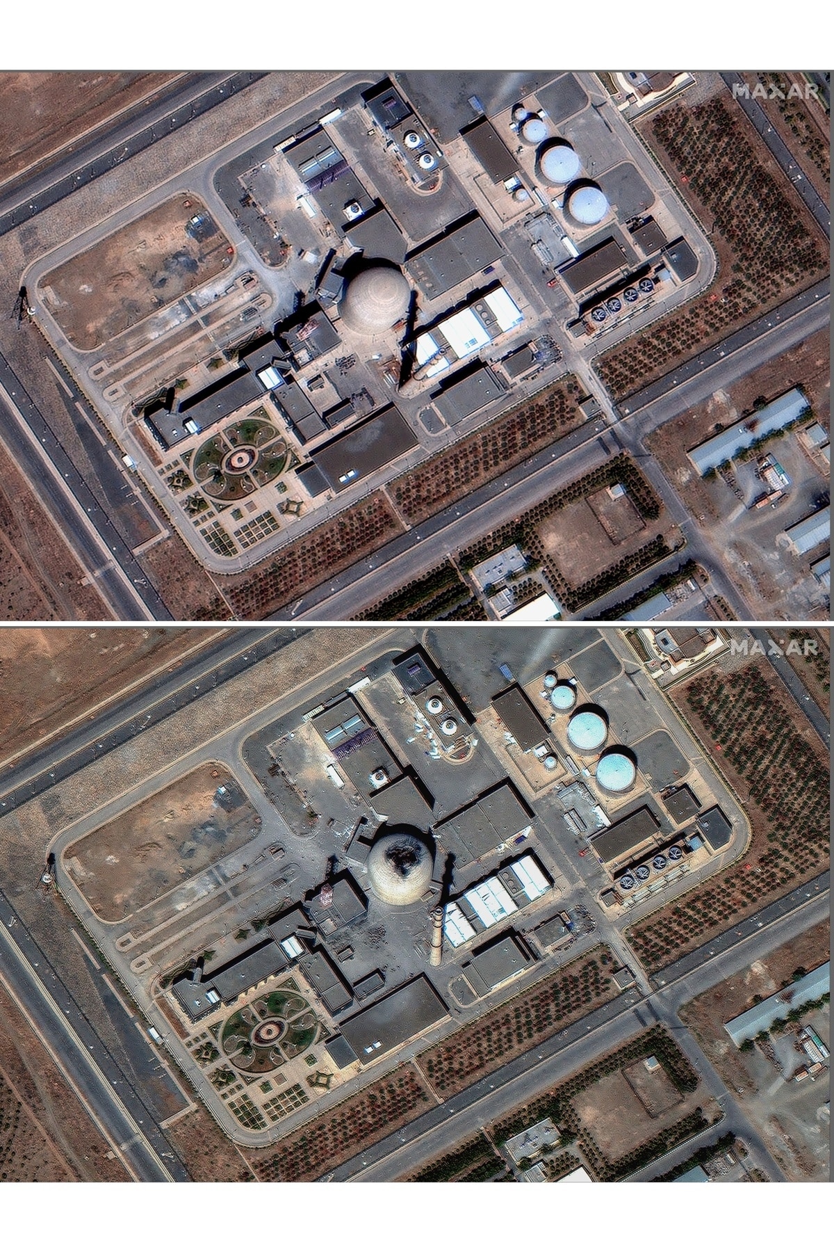 इस फोटो के साथ जारी कैप्शन में बताया गया है कि यह फोटो 18 जून 2025 की है. यह फोटो ईरान के अराक हेवी वॉटर रिएक्टर बिल्डिंग की है. नीचे वाली फोटो में इजरायल द्वारा किए गए एयर स्ट्राइक के बाद का अराक हेवी वॉटर रिएक्टर बिल्डिंग को दिखाया है. नीचे वाली इमेज में साफ देखा जा सकता है कि एक बड़ी सी इमारत के बीचोंबीच हमला करके उसको नुकसान पहुंचाया है.