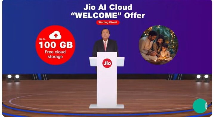 मुकेश अंबानी ने बताया कि Jio AI Cloud पर वेलकम ऑफर की शुरुआत दीवाली से होने जा रही है, जिसके तहत Jio यूजर्स को 100GB Free Cloud स्टोरेज मिलेगी. इसकी मदद से हर एक भारतीय को हर एक डिवाइस पर AI सर्विस और क्लाउड स्टोरेज की सुविधा मिल सकेगी. कंपनी के मुताबिक, यह एक सुरक्षित प्लेटफॉर्म है.