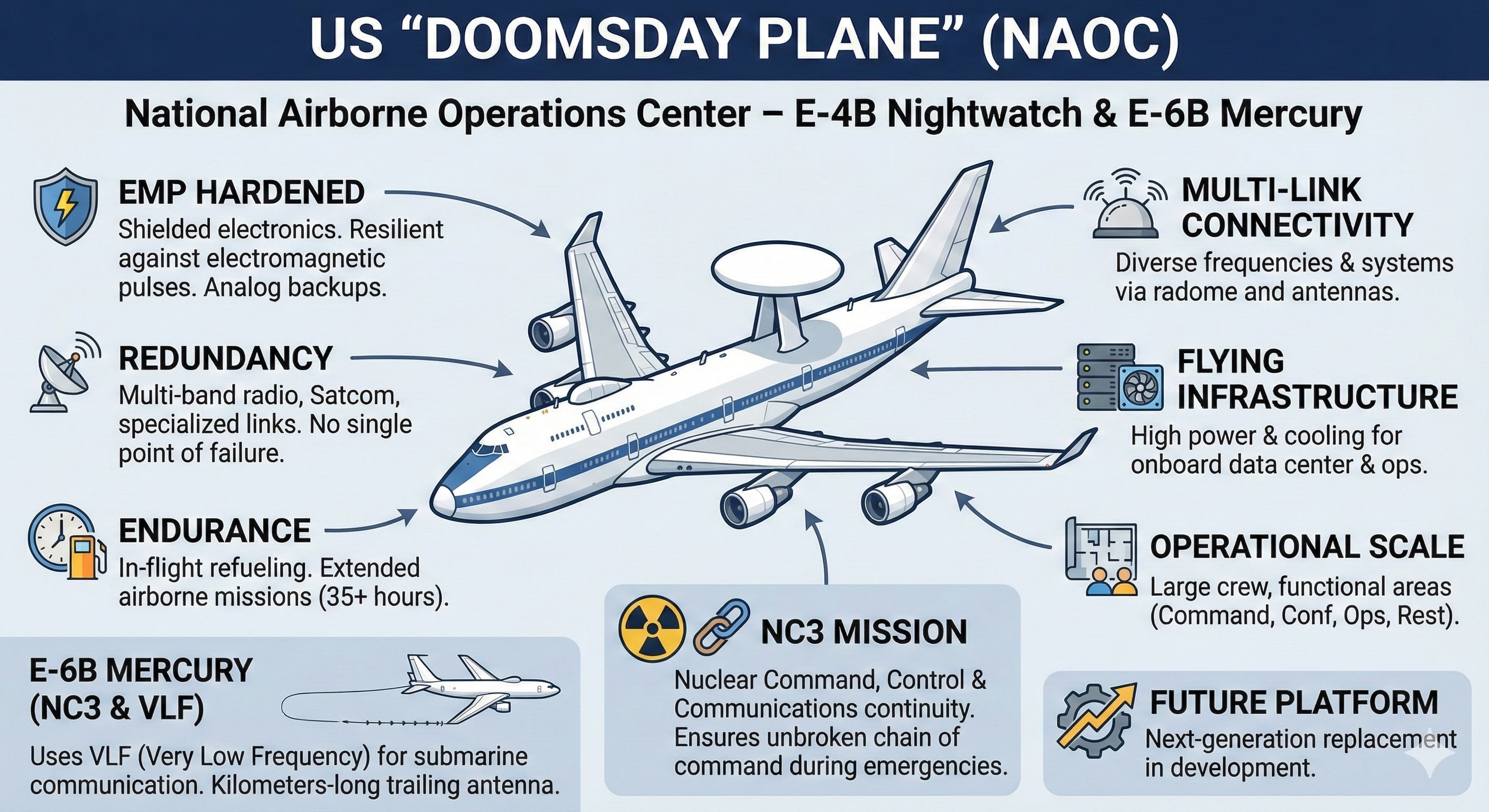 एइस प्लेन को समझने का सबसे सही टेक फ्रेम NC3 है. यानी न्यूक्लियर कमांड, कंट्रोल और कम्युनिकेशंस. नाम चाहे जो हो, टेक समस्या एक ही है. कमांड चेन को कभी टूटने नहीं देना. इसी वजह से यह पूरा सिस्टम सिंगल पॉइंट ऑफ फेल्योर के अपोजिट काम करता है.