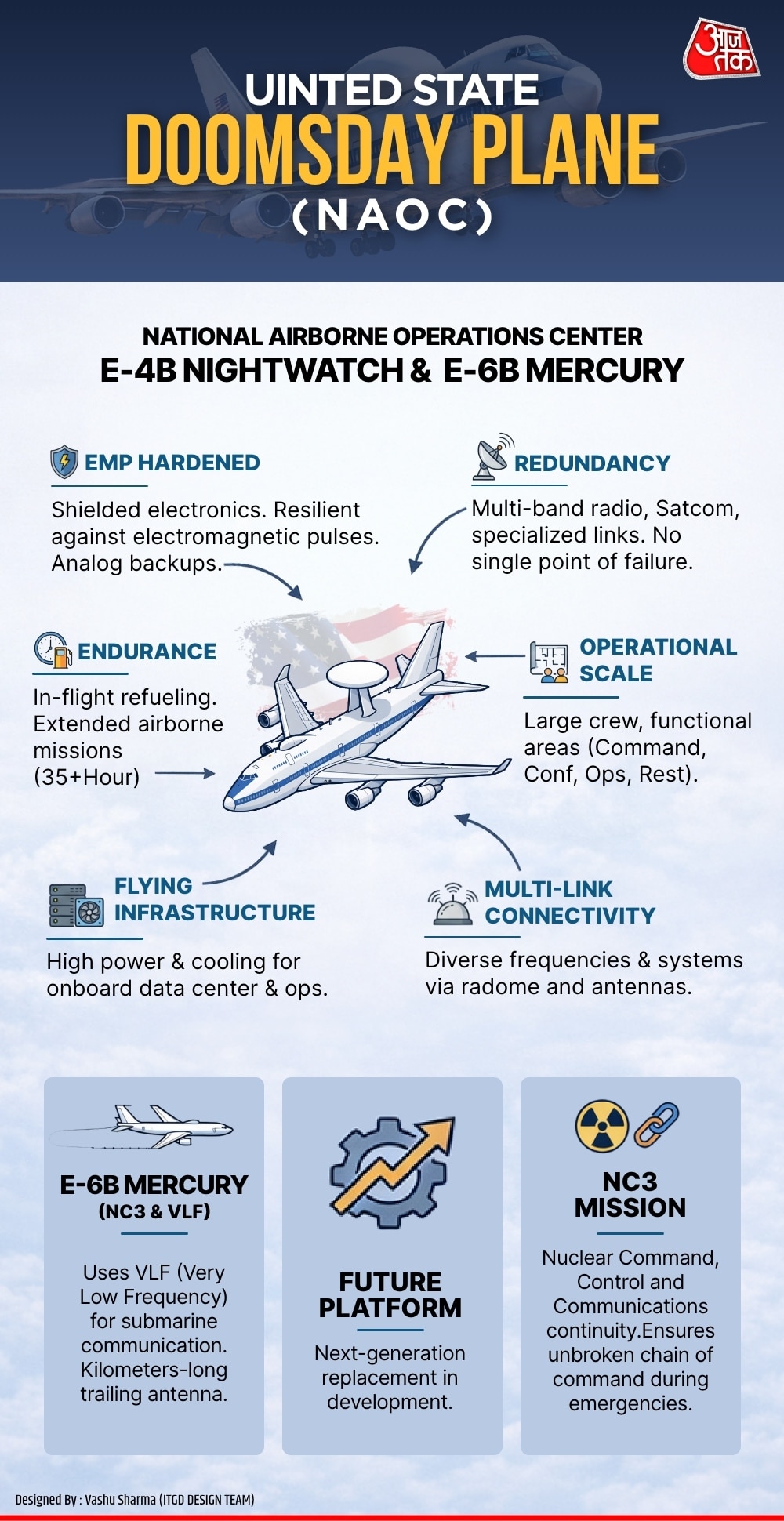 फिलहाल एक बड़ा डेवलपमेंट भी चल रहा है. अमेरिकी वायुसेना पुराने डूम्सडे प्लेन (Doomsday) बेड़े के रिप्लेसमेंट के लिए नए प्लेटफॉर्म पर काम कर रही है. यानी यह सिस्टम सिर्फ पुरानी कोल्ड वॉर कहानी नहीं, आज भी अपग्रेड हो रहा है.