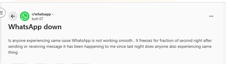 रेडिट यूजर्स ने लिखा कि क्या किसी यूजर्स को उनकी तरह वॉट्सऐप पर परेशानी का सामना करना पड़ रहा है. उनका मैसेजिंग ऐप कुछ दिनों से स्मूद काम नहीं कर रहा है.