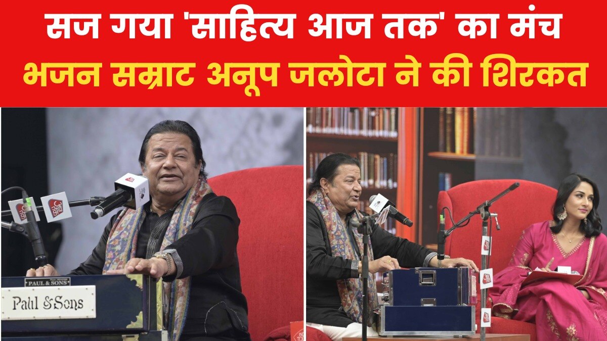 साहित्य के महाकुंभ 'साहित्य आजतक' के पहले ही दिन मंच पर आमंत्रित थे भजन सम्राट अनूप जलोटा. जिनकी भक्तिपूर्ण आवाज ने सत्र में मौजूद सभी दर्शकों को मन्त्रमुग्ध कर दिया.