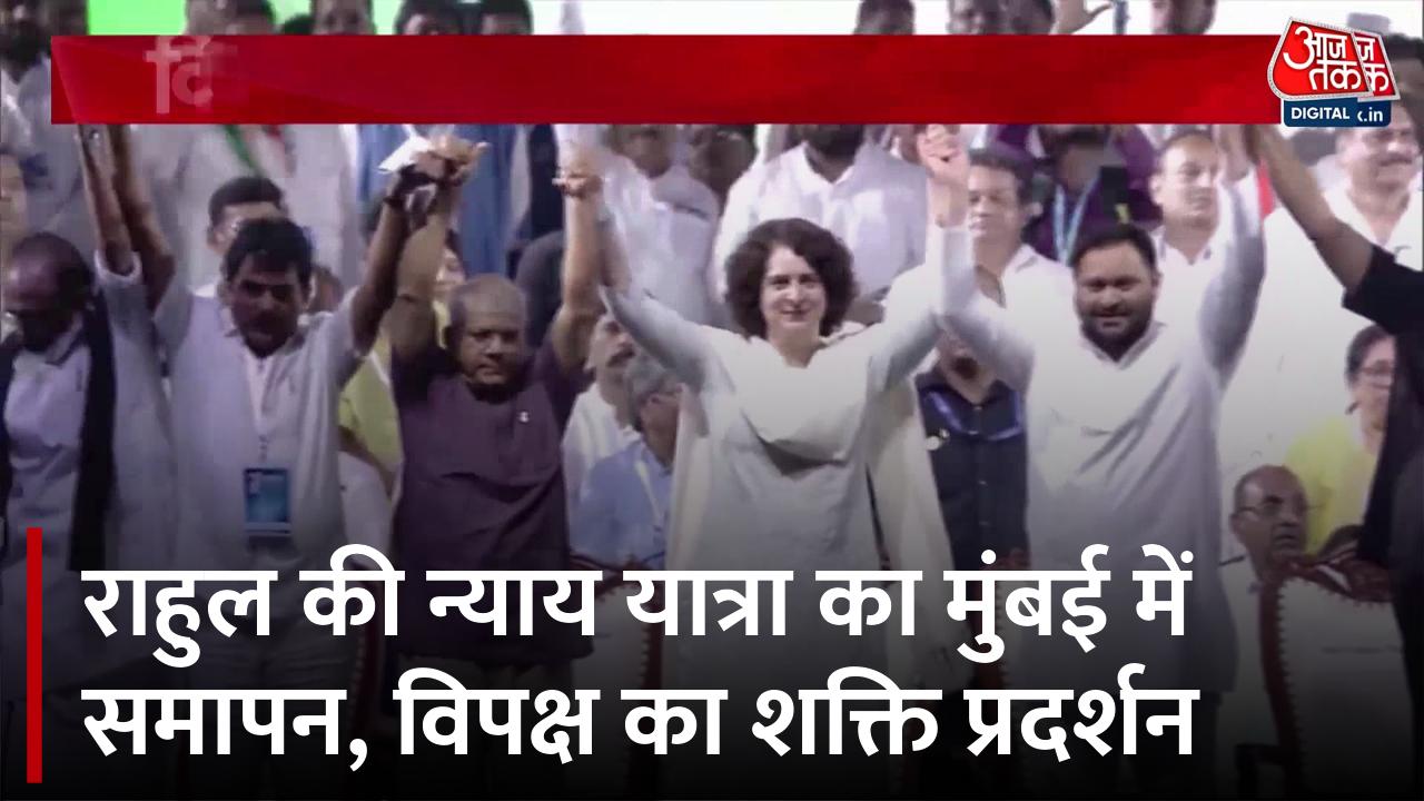 राहुल गांधी की 'भारत छोड़ो न्याय यात्रा' का भव्य समापन मुंबई के ऐतिहासिक शिवाजी पार्क मैदान में हुआ. इस अवसर पर विपक्ष के तमाम नेता एक ही मंच पर साथ नजर आए और सरकार पर तीखा हमला बोला. उद्धव ठाकरे, शरद पवार, फारुक अब्दुल्ला, महबूबा मुफ्ती, तेजस्वी और स्टालिन भी मौजूद थे. राहुल गांधी ने एक बार फिर मोदी सरकार पर हमला बोला. देखें ये वीडियो.