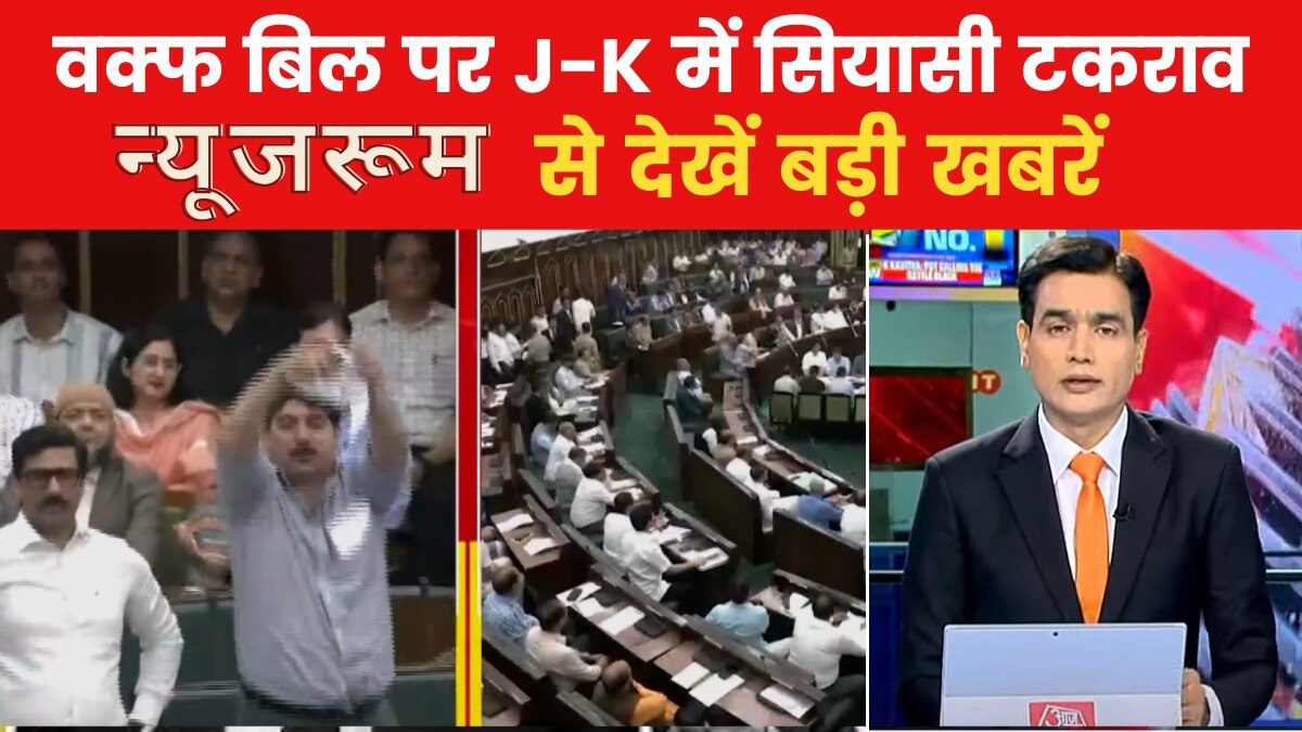वक्फ कानून को लेकर आज जम्मू कश्मीर विधानसभा में भारी हंगामा हुआ. नेशनल कॉन्फ्रेंस के तारिक सादिक ने स्थगन प्रस्ताव रखकर इस पर बहस की मांग की, लेकर जम्मू कश्मीर विधानसभा के स्पीकर ने नियमों का हवाला देकर चर्चा की अनुमति नहीं दी. सदन में एनसी विधायक ने काली जैकेट फाडकर विरोध प्रदर्शन भी किया. देखें न्यूजरूम से बड़ी खबरें.