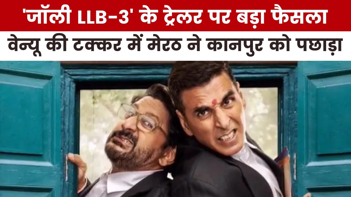 अक्षय कुमार और अरशद वारसी की फिल्म 'जॉली LLB-3' का ट्रेलर पहले मेरठ और फिर कानपुर में रिलीज होगा. फिल्म के मेकर्स ने दर्शकों से पूछा था की ट्रेलर पहले किस शहर में रिलीज किया जाए. लोगों ने जमकर वोटिंग की, जिसमें मेरठ ने बाजी मारी. देखें मूवी मसाला.