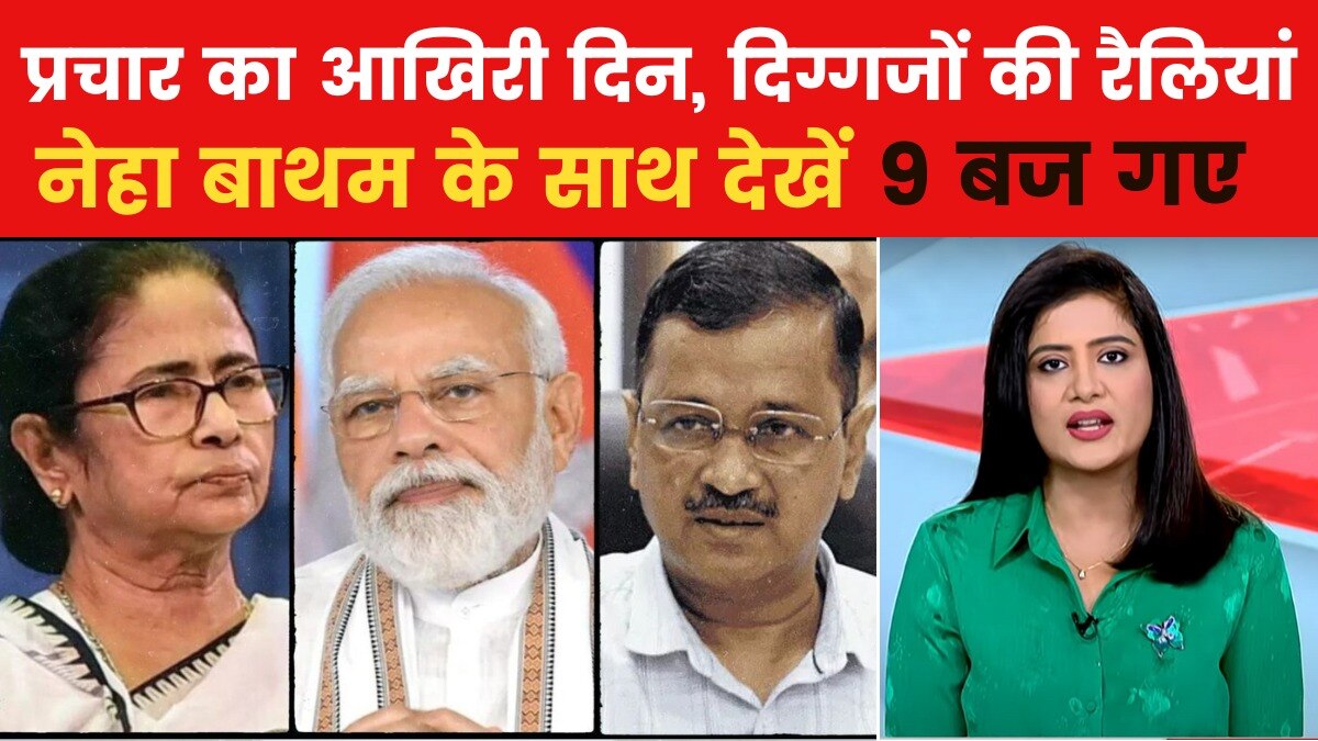चुनाव प्रचार का आज अंतिम दिन है और सभी दल जीत के लिए अपना पूरा जोर लगा रहे हैं. मोदी ध्यान लगाने कन्याकुमारी जा रहे हैं और अमित शाह ने यूपी के गाजीपुर में रोड शो किया. ममता बनर्जी ने कोलकाता की सड़कों पर पदयात्रा की. अब सभी की निगाहें 4 जून के नतीजों पर हैं. देखें '9 बज गए'.