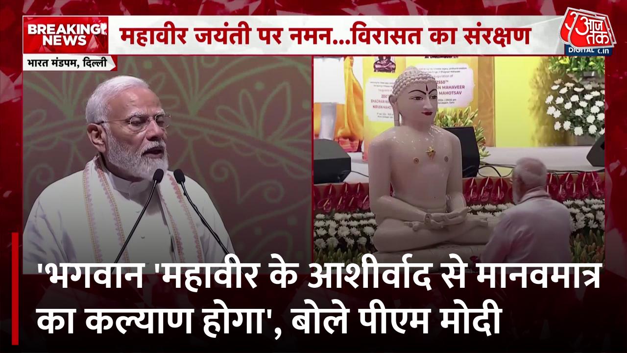 दिल्ली के भारत मंडपम में महावीर स्वामी की 2550वीं जयंती पर कार्यक्रम का आयोजन किया गया. इस मौके पर पीएम मोदी ने भगवान महावीर निर्वाण महोत्सव का उद्घाटन किया. उन्होंने कहा कि मुझे विश्वास है कि भारत के भविष्य निर्माण की इस यात्रा में आप सभी संतों का सहयोग देश के संकल्पों को मजबूत बनाएगा। देखें ये वीडियो.