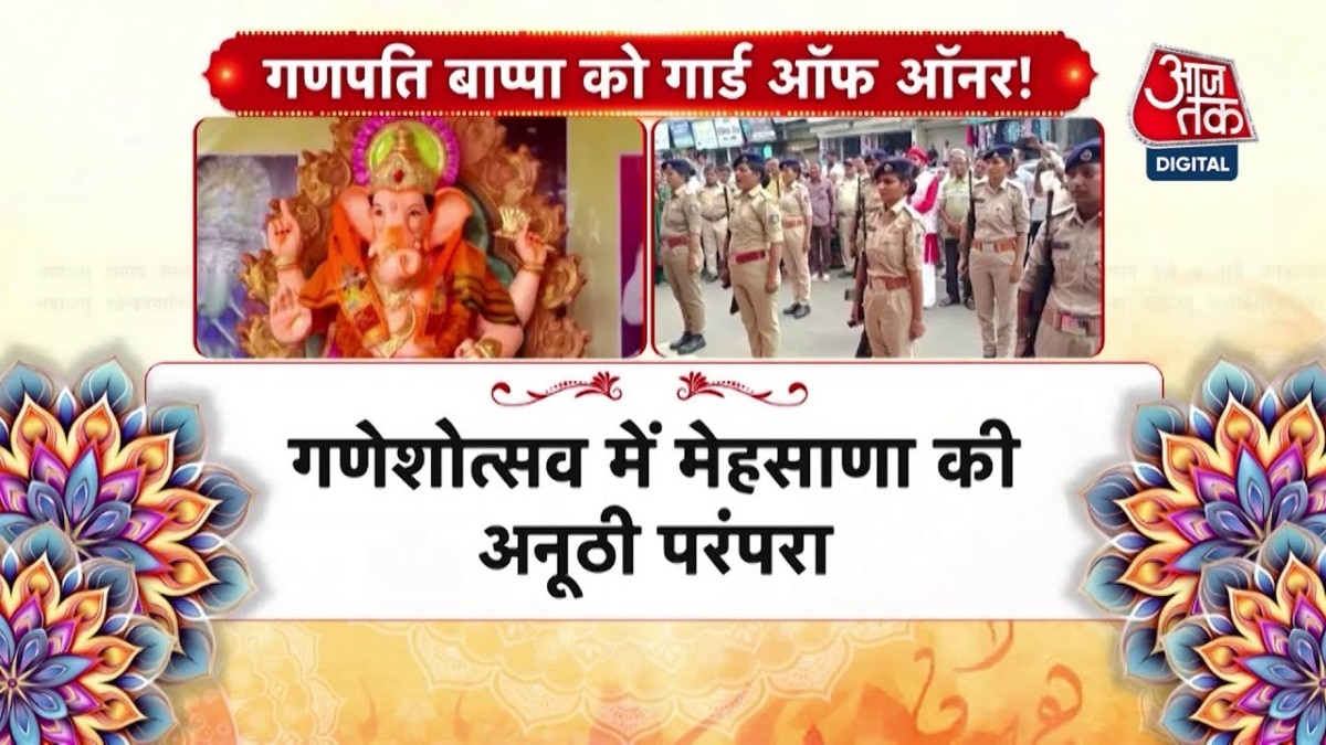 गुजरात के मेहसाणा में एक ऐसा गणपति मंदिर है, जो अपनी अनोखी परंपरा के लिए पूरे राज्य में मशहूर है. बाप्पा को हर साल यहां पुलिस विभाग की ओर से गार्ड ऑफ ऑनर दिया जाता है. प्रदेश में ये इकलौता ऐसा मंदिर है, जहां बाप्पा को गार्ड ऑफ ऑनर देने की परंपरा आज भी निभाई जाती है. देखें गुजरात आजतक.