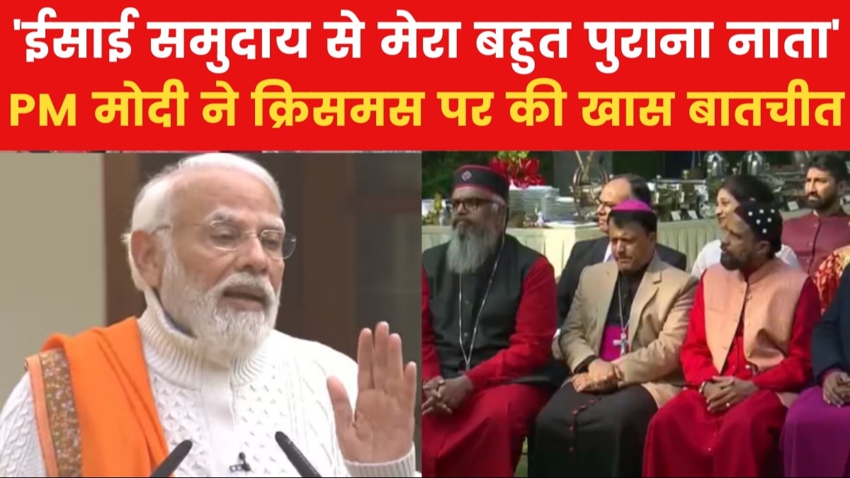 क्रिसमस के मौके पर प्रधानमंत्री नरेंद्र मोदी ने ईसाई समुदाय के लोगों से दिल्ली में खास मुलाकात की. पीएम मोदी ने अपने संबोधन में सभी देशवासियों को क्रिसमस की बधाई दी. पीएम मोदी ने कहा कि ईसाई समुदाय से मेरा बहुत पुराना नाता है. देखें वीडियो.