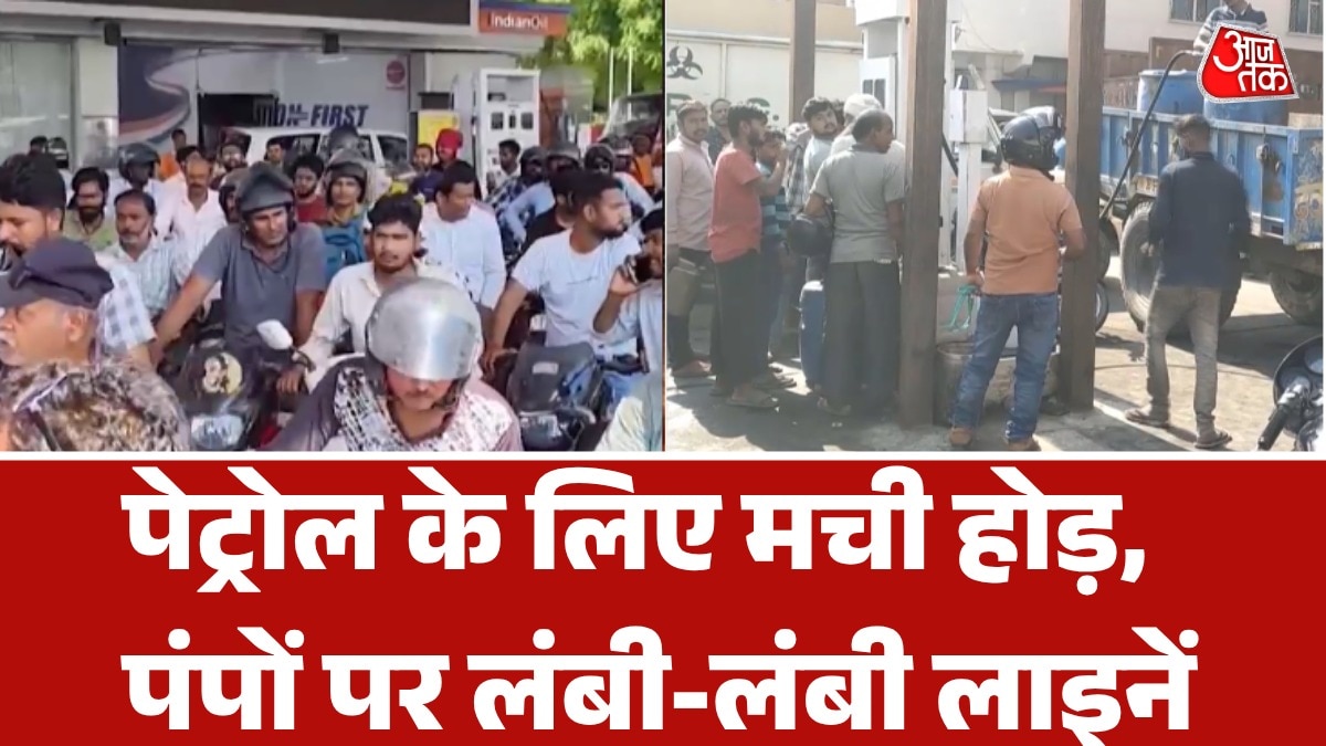 सरकार ने साफ कहा है कि भारत में पेट्रोल-डीजल, रसोई गैस सिलेंडर का कोई संकट नहीं है, लेकिन भारत में फिर भी प्रयागराज से लेकर हैदराबाद तक पेट्रोल पंपों पर लंबी लाइनें दिख रही हैं. महाराष्ट्र के कोल्हापुर जिले में तो बाइक को 200 रुपये और कार को 2000 रुपये का अधिकतम पेट्रोल देने का नियम लागू करना पड़ा. महाराष्ट्र के सोलापुर, रत्नागिरी जैसे जिलों में पेट्रोल पंप पर लाइनें हैं.