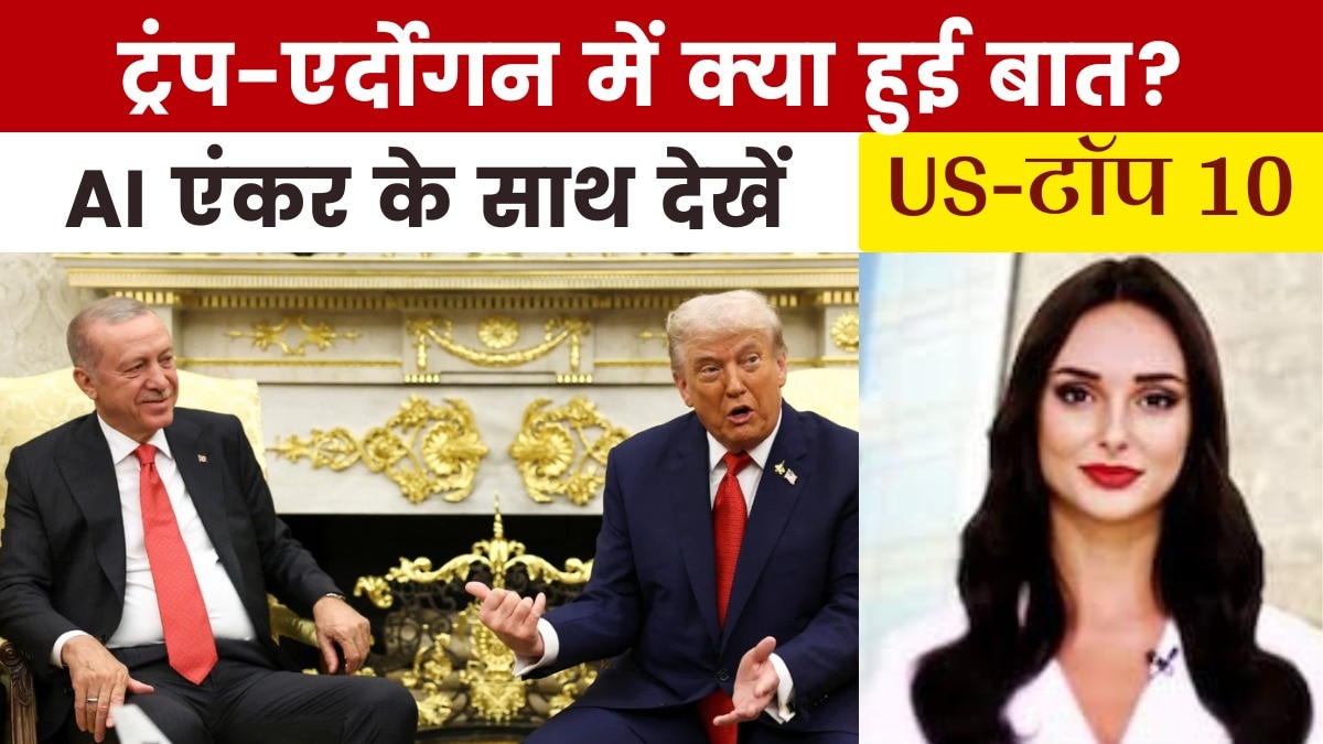 व्हाइट हाउस में ट्रंप और तुर्की के राष्ट्रपति एर्दोगन के बीच अहम मुलाकात हुई. ट्रंप ने कहा कि अमेरिका तुर्की पर से प्रतिबंध हटाएगा. उन्होंने साथ ही कहा कि गाजा में युद्ध जल्द रुक सकता है. सभी बंधक और मारे गए लोगों के शव हमास को एक बार में लौटाने होंगे. देखें यूएस टॉप-10.