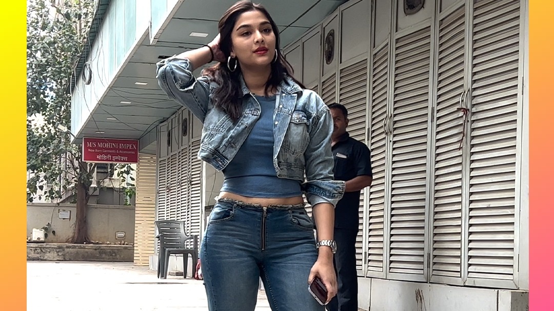 क्रॉप डेनिम जैकेट संग बेल बॉटम जींस पहने स्पॉट हुईं सई, आपने देखा लुक?