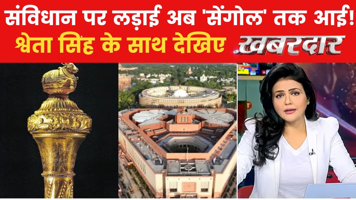 18वीं लोकसभा के भीतर संविधान पर छिड़ी सियासत में अब सेंगोल तक संग्राम होने लगा है. विपक्ष के नेता लगातार संविधान को लेकर सरकार को घेरने में जुटे हैं. वहीं, आपातकाल के पचास साल को याद कराते हुए सरकार भी विपक्ष से सवाल पूछता नजर आ रहा है और अब नया विवाद सेंगोल के साथ शुरु हुआ है. देखें खबरदार.