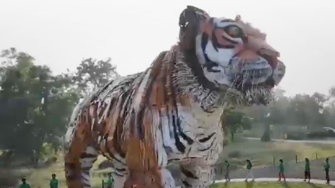 मध्य प्रदेश के सिवनी में पेंच टाइगर रिज़र्व द्वारा कबाड़ से बनाए गए बाघ के एक अनोखे स्टैच्यू का मुख्यमंत्री मोहन यादव ने अनावरण किया. यह कलाकृति अब दुनिया में कबाड़ से बनी सबसे बड़ी बाघ की कलाकृति बन गई है और इसने अमेरिका के जॉर्जिया में बने पिछले रिकॉर्ड को तोड़ दिया है. स्टैच्यू को बनाने में पुरानी साइकिल पाइप जंग लगी चादरें और दूसरे बेकार पड़े सामान को मिलाकर 10 टन लोहे का इस्तेमाल किया गया है.