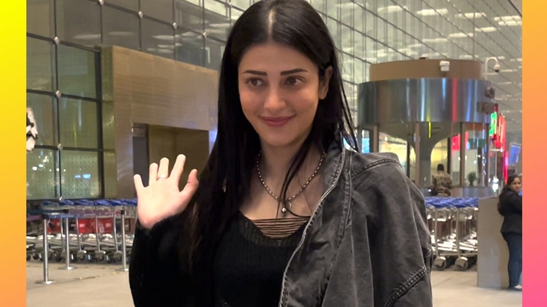 एक्ट्रेस श्रुति हासन को मुंबई एयरपोर्ट पर स्पॉट किया गया, यहां श्रुति एकदम स्टाइलिश आउटफिट में नज़र आईं