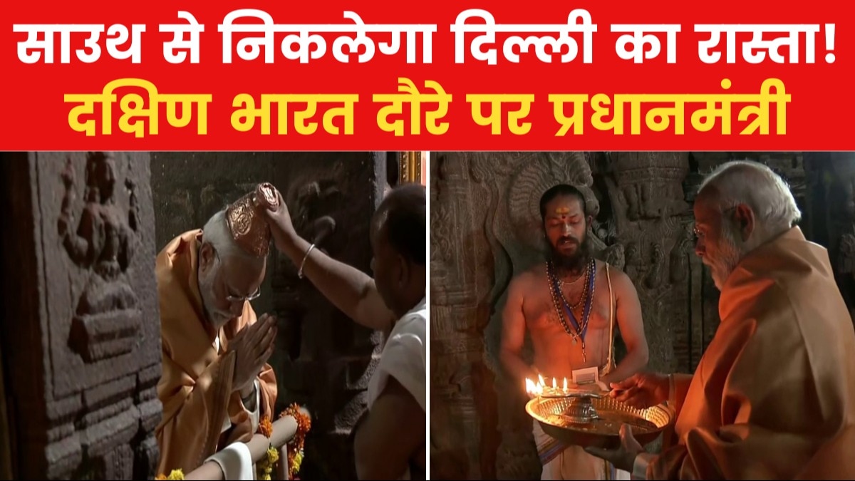प्रधानमंत्री नरेंद्र मोदी दो दिनों के दक्षिण भारत के दौरे पर हैं. पीएम मोदी आंध्र प्रदेश पहुंच चुके हैं और उन्होंने लेपाक्षी के वीरभद्र मंदिर में पूजा भी की है. इसके साथ ही उन्होंने तेलुगु में रंगनाथ रामायण के छंद भी सुने.