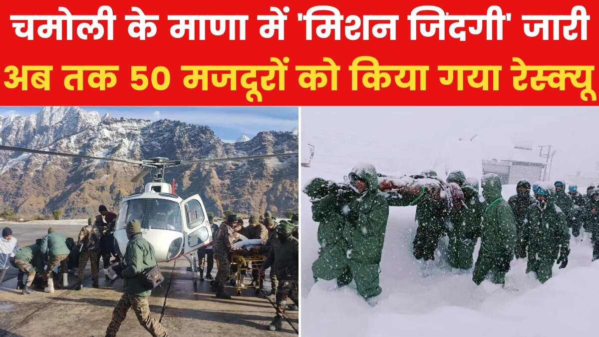 उत्तराखंड के चमोली में बर्फीले तूफान में फंसे 55 मजदूरों में से 47 को सफल बचा लिया गया है. 8 मजदूर अभी भी फंसे हुए हैं जिन्हें बचाने के लिए सेना, NDRF, SDRF और ITBP की टीमें जुटी हुई हैं. सेना का MI-17 हेलिकॉप्टर भी रेस्क्यू ऑपरेशन में शामिल है. मुख्यमंत्री पुष्कर सिंह धामी जल्द ही घटनास्थल पर पहुंचेंगे. देखें...