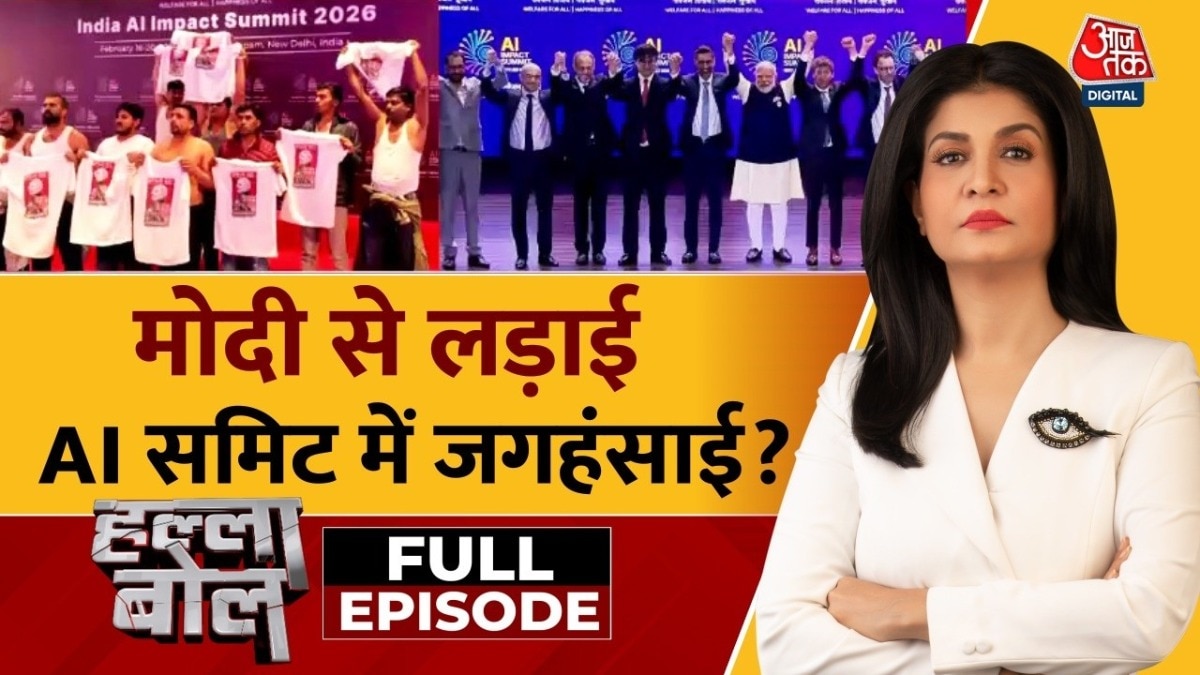 आज का दंगल घरेलू सियासत में देश के वैश्विक अपमान पर है. क्योंकि दिल्ली में चल रहे एआई इम्पैक्ट समिट में आज ऐसी घटना हुई है जिसे लेकर बीजेपी हमलावर है. दिल्ली में चल रहे जिस एआई समिट में शामिल होने के लिए दुनिया भर से नेता-उद्योगपति-टेक्नोकरेट्स भारत आए हुए हैं. उसी मेले में जाकर युवा कांगरसे के 10 कार्यकर्तां ने यूएस डील के विरोध में प्रदर्शन करना शुरू कर दिया. ये कार्यकर्ता अपनी टीशर्ट उतारकर उसे बैनर की तरह लहराकर प्रदर्शन कर रहे थे.