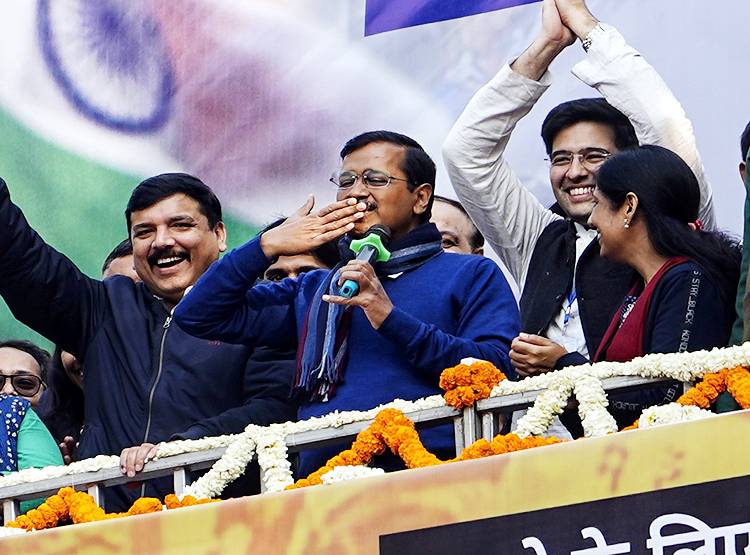 इससे पहले भाजपा ने 9 केंद्रीय मंत्रियों, 35 पदाधिकारियों, 6 मुख्यमंत्रियों, 3 पूर्व मुख्यमंत्रियों, 8 सांसदों, 38 पूर्व मंत्री-सांसदों को प्रचार में लगाया था. लेकिन दिल्ली में अरविंद केजरीवाल को जीतने से कोई नहीं रोक पाया. (फोटोः हार्दिक छाबड़ा)