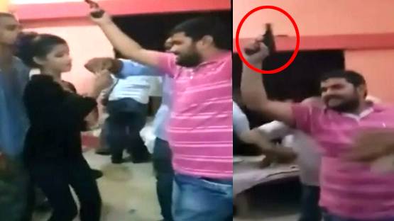 वीडियो में दिखाई देता है कि युवक डांस कर रहा है. भोजपुरी गाने चल रहे हैं. अचानक चौकी पर बैठे कुछ युवकों में से एक खड़ा होता है और हाथ में पिस्टल लहराते हुए लड़की के साथ डांस शुरू कर देता है.