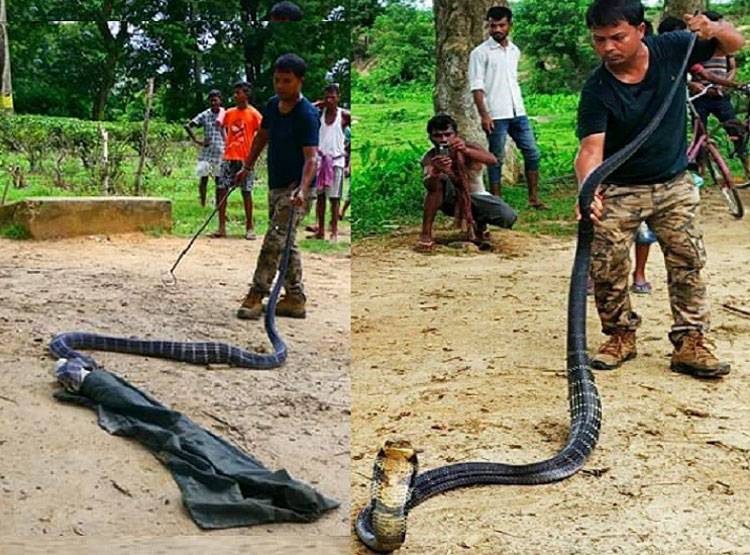 असम के नागौन जिले के जेजुरी स्थित चाय बागान से एक 14 फीट लंबे किंग कोबरा का रेस्क्यू किया गया. इसके बाद इसे पास के ही सुवांग रिजर्व फारेस्ट में छोड़ दिया गया. कोबरा की तस्वीरें सोशल मीडिया पर वायरल हो गईं और लोग तरह-तरह की जानकारियां देने लगे.
