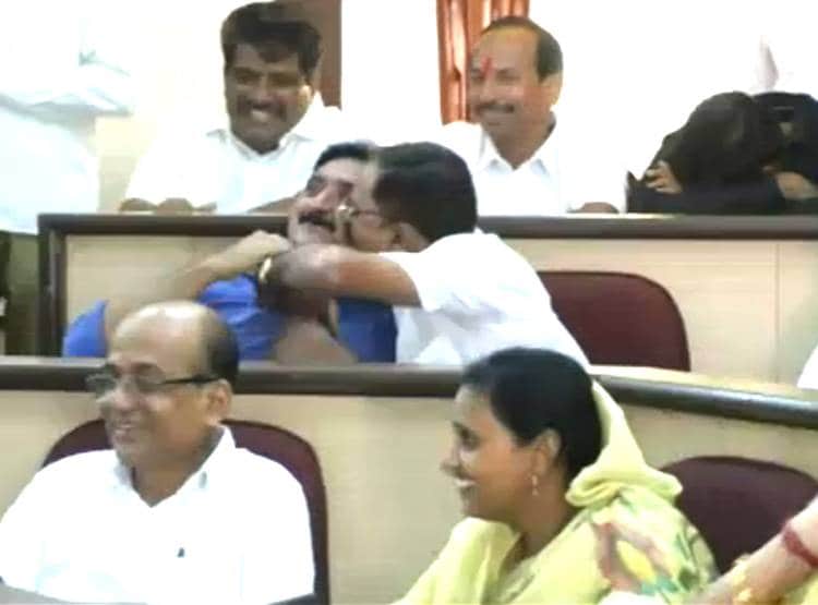बीजेपी ताराराणी गठबंधन के कॉर्पोरेटर कमलाकर भोपले ने जहां सत्ताधारी पार्टी राष्ट्रवादी कांग्रेस के कॉर्पोरेटर के बैठने की जगह थी, उस जगह पर जाकर कांग्रेस के सभागृह नेता शारंगधर देशमुख के साथ बात करते-करते चुंबन लिया. इस सभागृह में महिला कॉर्पोरेटर के सामने यह हरकतें की गईं.