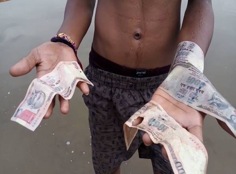 नर्मदा में बहते मिले 500-1000 के पुराने नोट, लूट की मची होड़