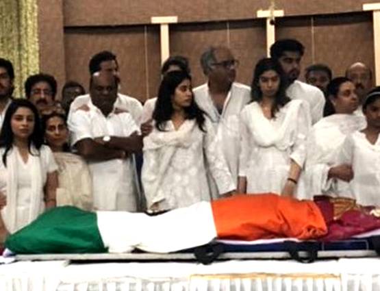 इससे पहले सामने आया था कि अंतिम दर्शन के दौरान श्रीदेवी को सुनहरी लाल रंग की साड़ी पहनाई गई. उनके एक करीबी ने कहा कि उन्हें देखकर ऐसा लग रहा है कि वो बहुत शांति में हैं.