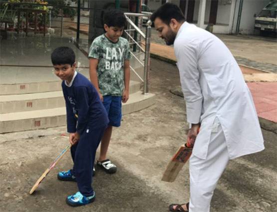 तेजस्वी ने खुद अपने ट्विटर अकाउंट पर अपनी 4 तस्वीरें पोस्ट की हैं जिनमें वो बच्चों के साथ क्रिकेट खेलते नजर आ रहे हैं.