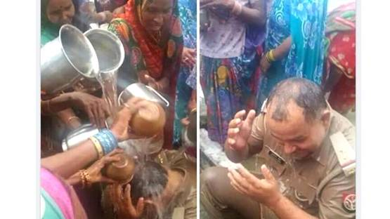 बारिश को लेकर अलग-अलग समाज में अलग-अलग मान्यताएं हैं. लोग बारिश नहीं होने पर तरह-तरह 'जुगाड़' करने का दावा करते रहे हैं. कई दावे अंधविश्वास पर आधारित होते हैं. वहीं सोशल मीडिया पर एक ऐसी फोटो सामने आई है जिसमें महिलाओं का एक समूह पुलिस अफसर को नहला रहा है.