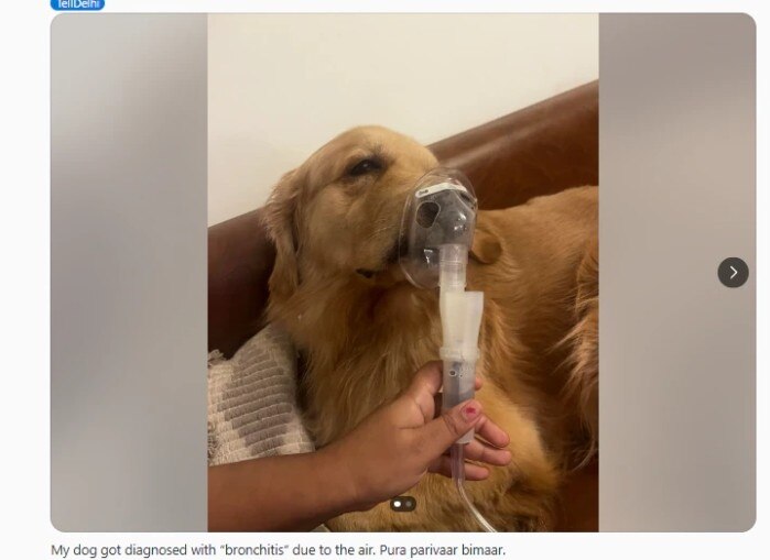 पोस्ट साझा करने वाले दिल्ली निवासी ने लिखा कि हवा इतनी खराब है कि मेरा कुत्ता भी बीमार पड़ गया है.यूजर का दावा है कि उनके पालतू को ब्रॉन्काइटिस हो गया है और इसकी सबसे बड़ी वजह दिल्ली की जहरीली हवा है.