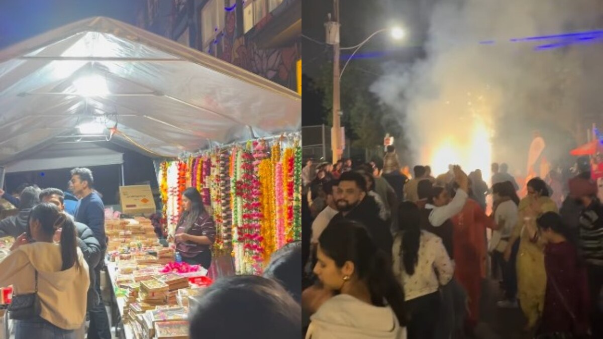 वीडियो में देखा जा सकता है कि सड़कें रंग-बिरंगी लाइट्स से सजी हुई हैं, लोग पारंपरिक कपड़ों में नजर आ रहे हैं, और चारों ओर पटाखों की चमक ने आसमान को रोशन कर दिया है. जगह-जगह मिठाई की दुकानें, भारतीय झंडे, सजावटी दीये और मेला जैसे स्टॉल्स दिखाई दे रहे हैं.